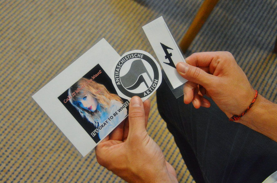 Eine Teilnehmerin blieb am Foto eines jungen Mannes hängen, von dem sie zugeben musste: „der sieht doch ganz nett aus.“ Die Aufklärung des FRED-Teams: „Das ist Martin Sellner, einer der führenden Akteure der Neuen Rechten.“ Ja, eben keine Glatze und Springerstiefel, sondern sympathisches und erst einmal gemäßigtes Auftreten, das ganz bewusst an den Tag gelegt wird, um Türen zu öffnen.
